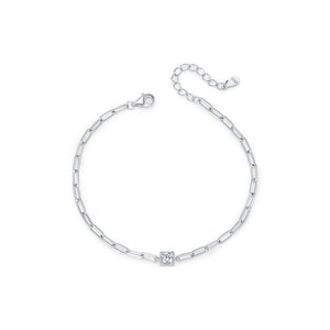925 Sterling Silver Paperclip Chain Bracelet with Moissanite Stone
