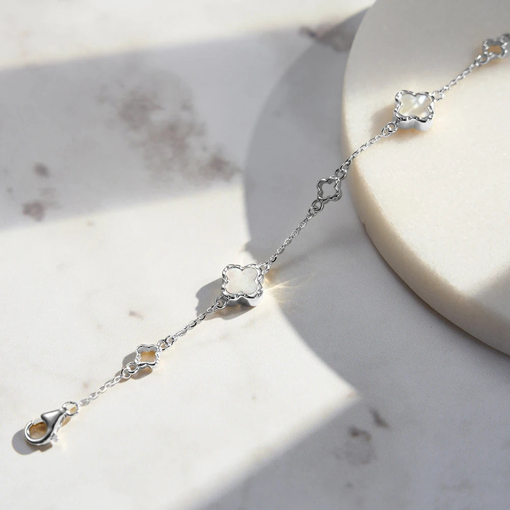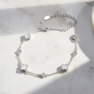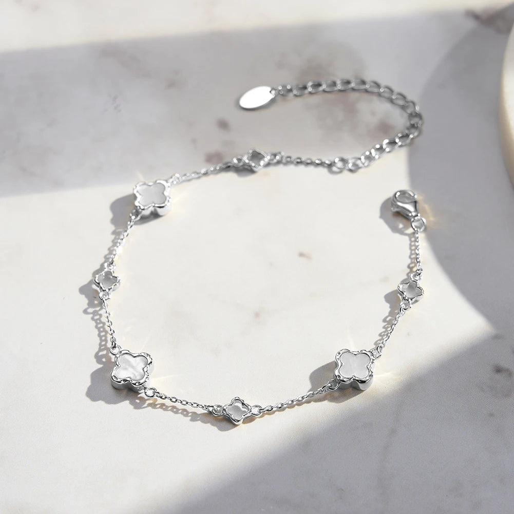 925 Sterling Silver White Shell Four-Leaf Clover Bracelet