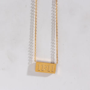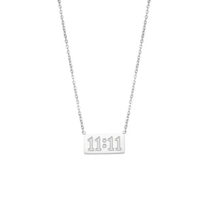 The 11:11 Number Rectangular Pendant Necklace in silver is a timeless piece with a deeper meaning. Known as a symbol of synchronicity and manifestation, 11:11 is often seen as a reminder to trust your path and embrace new beginnings. Its clean, minimal design makes it a versatile choice for everyday wear or as a thoughtful, meaningful gift.