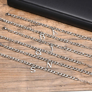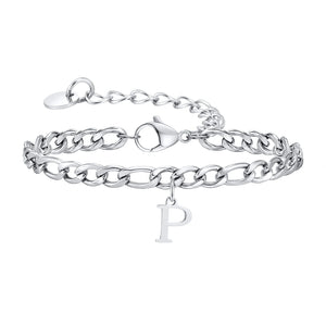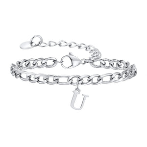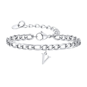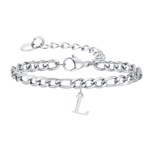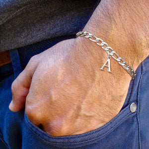 Classic Initial Bracelet Figaro Silver