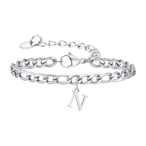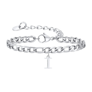 Wrap your wrist in the warm gleam of the Classic Initial Bracelet Figaro in Silver, where a sleek initial pendant meets a sturdy Figaro Chain. This Silver Bracelet feels substantial yet lightweight, with 316L stainless steel that shines day after day. The adjustable design ensures a perfect fit, while the polished links offer a subtle touch of luxury. Wear this Chain Bracelet solo or stack it with your favorites for a personalized look.