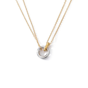 For the lovers of contrast, our Dual Chain Ring Necklace features a sleek silver-tone pendant suspended on a delicate gold-tone stainless steel double chain. The interlocking rings symbolize unity and balance, while the two-tone design adds a modern edge to your look. Elegant, waterproof and hypoallergenic — perfect for everyday wear or gifting.