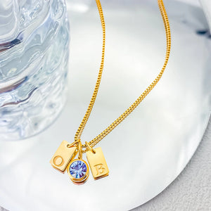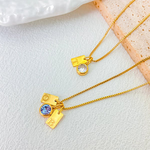 Personalize your look with the Engraved Silver Charm Necklace with Initial and Birthstone. This Necklace blends Initial Jewelry charm and Birthstone Jewelry sparkle with a Silver finish. Crafted from 14K gold-plated stainless steel on a 42 + 5 cm adjustable box chain, it’s perfect for solo wear or layering.