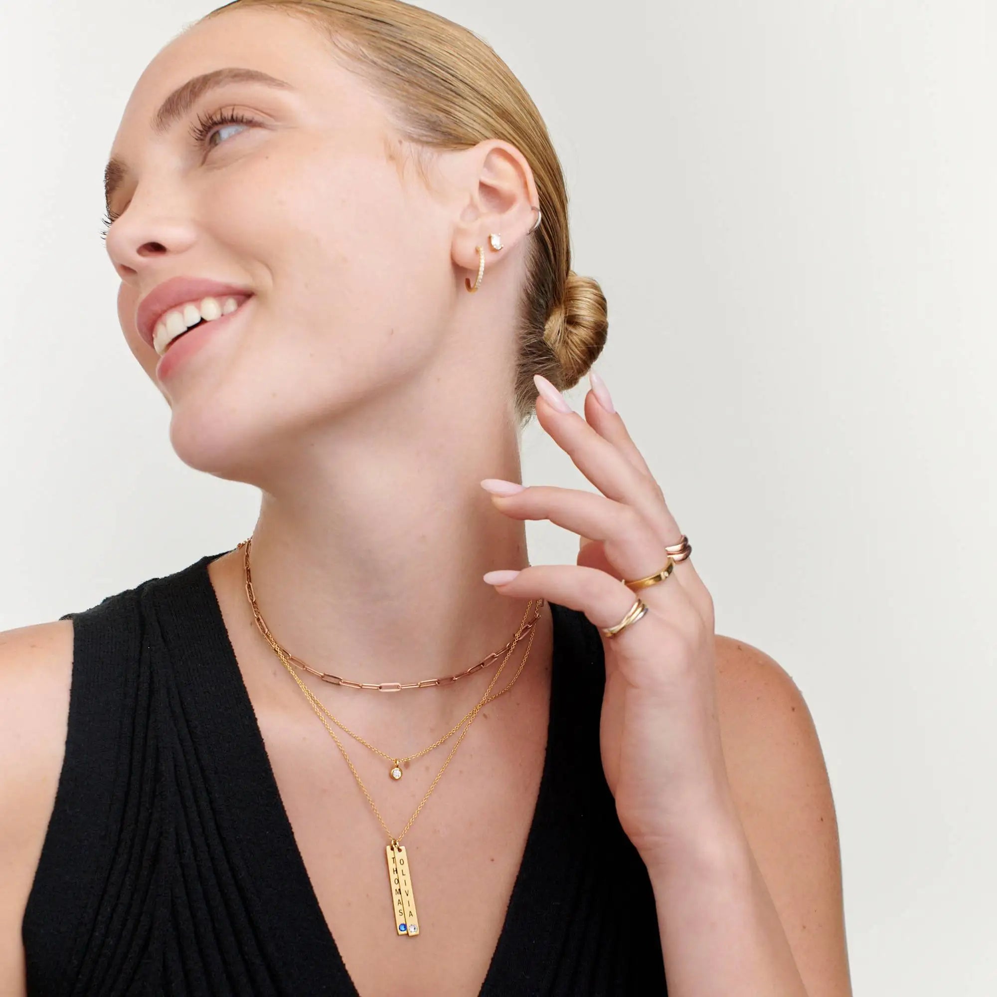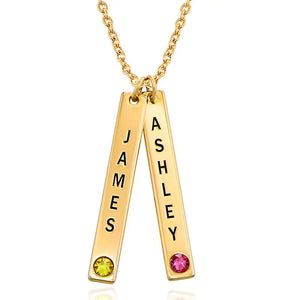Font Guide Engraved Vertical Bar Name Necklace with Birthstones