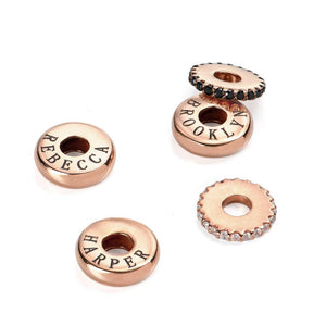 Keep your loved ones close with the Family Necklace with Engraved Names Rose Gold. Each charm is a sleek, rose gold-finished ring that can be engraved with a meaningful name, date, or word, while sparkling cubic zirconia accents sit beautifully between them. A heartfelt keepsake that’s as stylish as it is personal, perfect for every day or special occasions.