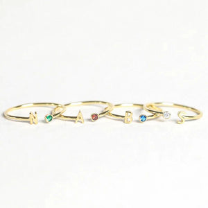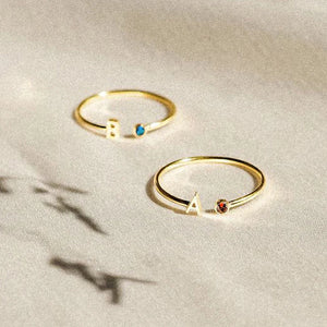 Add a touch of sparkle and meaning to your everyday look with this gold birthstone ring with initial. The warm golden hue pairs beautifully with the personalized touch of your chosen initial and the dazzling birthstone, creating a piece that's as unique as you are. Whether it's a gift for someone special or a treat for yourself, this ring blends timeless charm with modern style.