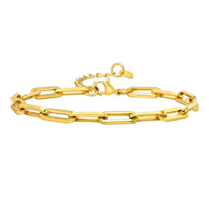 Minimalist, chic, and endlessly versatile — this Gold Paperclip Bracelet is a timeless accessory you’ll love to wear every day. The warm gold finish adds a touch of understated luxury to the modern paperclip chain design. Perfect for wearing solo or stacking with your favorite pieces, this gold bracelet effortlessly complements any style.