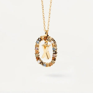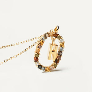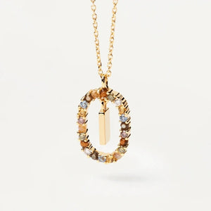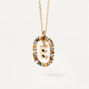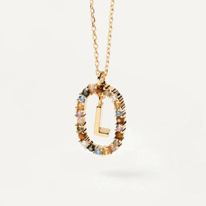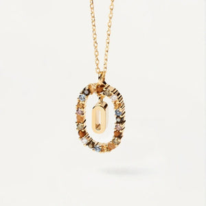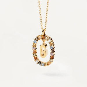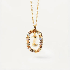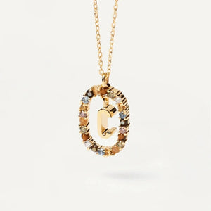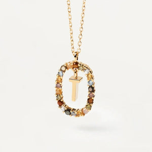 Rainbow Circled Initial Necklace Gold