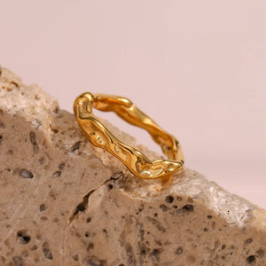 Inspired by the natural movement of ocean waves, the Raw Wave Ring Gold adds a subtle yet striking touch to any look. Its smooth, organic curves catch the light beautifully, creating a golden shimmer with every gesture. Whether you’re dressing up or keeping it casual, this ring offers a touch of everyday luxury without the premium price tag.