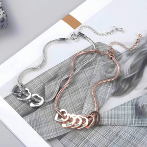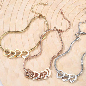 Personal, timeless, and made to be cherished — this Snake Chain Bracelet with Engraved Charms Rose Gold is more than just an accessory. The smooth rose gold snake chain feels luxurious on the skin, while the heart-shaped charms offer space for names, dates, or special words. Whether it’s a gift or a keepsake for yourself, this rose gold bracelet with engraved charms is a beautiful way to carry what matters most.