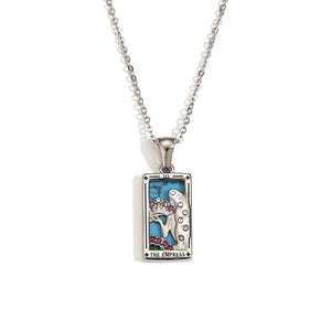 Tap into your inner Empress with this eye-catching 18K gold-plated tarot pendant THE EMPRESS© with a silver finish. Set against a bold turquoise background with delicate floral details, it’s all about feminine energy, creativity, and confidence. Whether you're into tarot vibes or just love standout jewelry, this piece brings a cool, mystical edge to any look. Wear it solo or layer it up—it’s a perfect gift or a personal power piece.