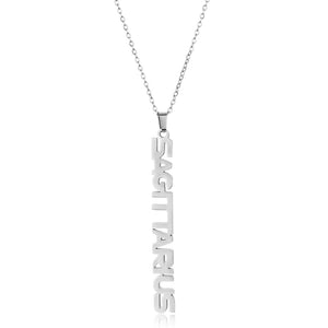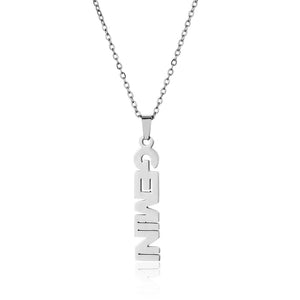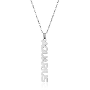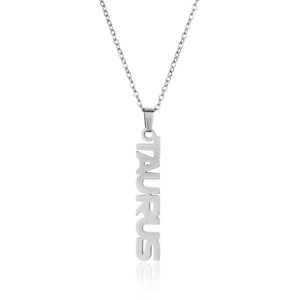 Bold, personal, and full of meaning — this Zodiac Sign Necklace Text Silver is a modern way to wear your star sign. The silver zodiac sign pendant features your zodiac name in sleek, vertical capital letters, paired with a polished link chain for a stylish, everyday look. Whether you’re an Aries, a Taurus, or a Pisces, this silver pendant necklace keeps your astrological identity close in the most fashionable way.